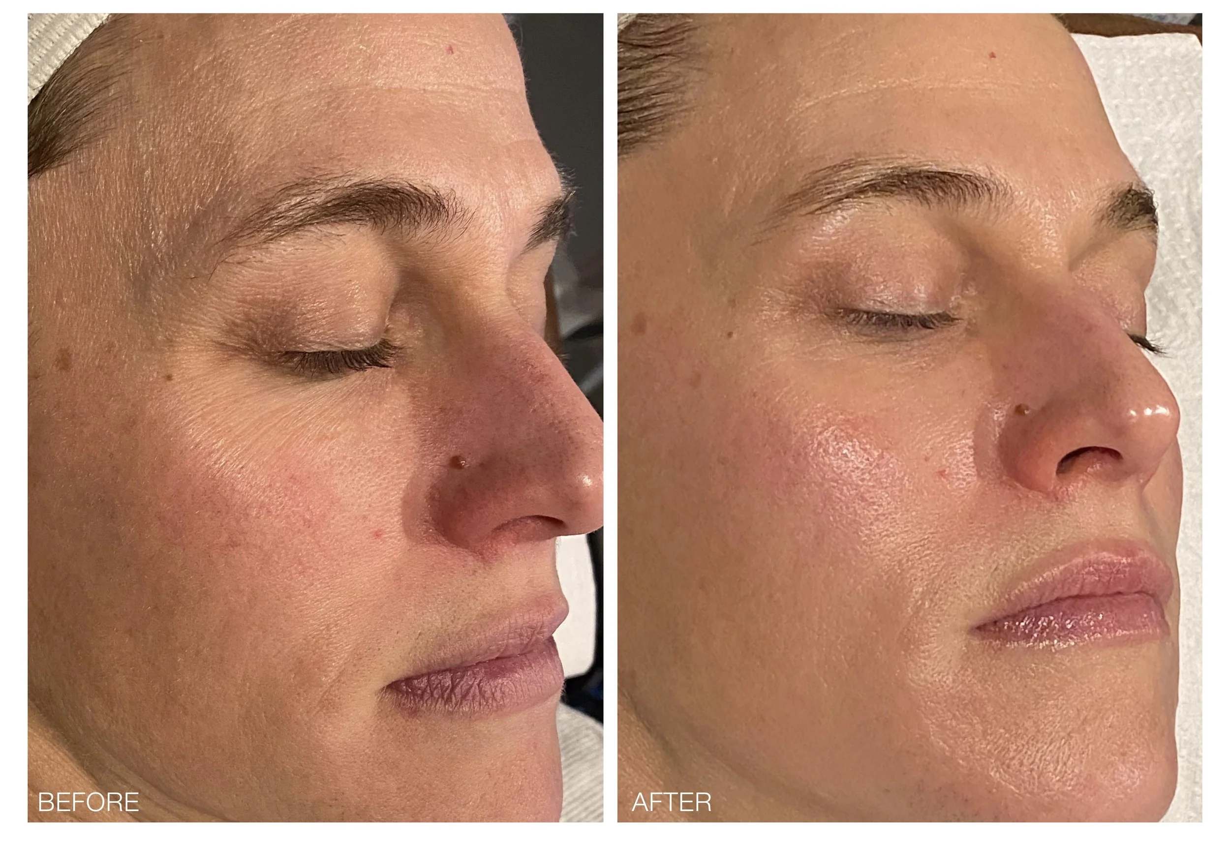 NanoSculpt creates channels to allow product to absorb into skin more quickly, allowing for 97% product absorption. That means any moisturizing you do for up to 10 days after your NanoSculpt treatment, your skin will drink up all of that hydration. So, feel free to apply face oil/serum several times throughout the day up to 10 days after your NanoSculpt.